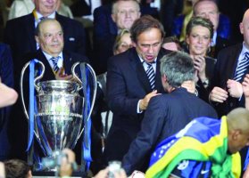 وقررت اللجنة التأديبية التابعة للاتحاد الاوروبي ايقاف مورينيو 3 مباريات نافذة وواحدة مع وقف التنفيذ مع غرامة مالية بقيمة 50 الف يورو بسبب «تصريحاته غير المناسبة» عقب خسارة فريقه امام غريمه التقليدي برشلونة صفر-2 في ذهاب الدور نصف النهائي لمسابقة دوري ابطال اوروبا. وادلى مورينيو بتصريحات نارية عقب المباراة، مؤكداً ان الحكام ينحازون دائماً لمصلحة برشلونة. وقال: «لماذا يحصل دائما الامر ذاته في نصف النهائي (لمسابقة دوري ابطال اوروبا مع الفرق التي يشرف مورينيو على تدريبها)؟ نحن بصدد الحديث عن فريق رائع (برشلونة). لا أعرف ما اذا كان الانحياز، لأن الامر يتعلق باليونيسيف (راعي أقمصة برشلونة)، او لسلطة السيد فيار (رئيس الاتحاد الاسباني) داخل الاتحاد الاوروبي. لا أعرف». ولم يتوقف مورينيو عند هذا الحد، بل اضاف: «جوسيب غوارديولا مدرب رائع لكنه احرز دوري ابطال اوروبا عام 2009 ولو كنت مكانه لخجلت لفوزي به بعد فضيحة ستامفورد بريدج (ضد تشلسي). وهذا العام اذا توج بها ستكون فضيحة برنابيو. اتمنى ان يفوز بها في يوم من الايام من دون فضيحة». وكانت العقوبة الاجمالية بحق مورينيو 4 مباريات نافذة وواحدة مع وقف التنفيذ، لكنه استنفذ مباراة واحدة من خلال غيابه عن مباراة الاياب. وبالنسبة للمباراة موقوفة التنفيذ فإن سريان مفعولها يمتد على 3 اعوام. وقرر ريال مدريد استئناف قرار ايقاف مدربه وسيتم البحث بهذا الاستئناف في 29 تموز (يوليو) المقبل. وتحدث بلاتيني عن ايقاف مورينيو، قائلاً: «اعلم انكم كتبتم وتكتبون في الصحف بأن بلاتيني تدخل (في هذه العقوبة)…هذا ليس صحيحاً. انا لا اتعاطى بالشؤون التأديبية او التحكيمية. لكن هذا الامر لا يعني ان حبي له قد تضاءل. عندما كنت لاعباً كانت تربطني علاقة جيدة مع بعض الحكام الذين رفعوا البطاقة الصفراء في وجهي. والدي كان يصفعني لارتكابي الحماقات وذلك لأنه يحبني».