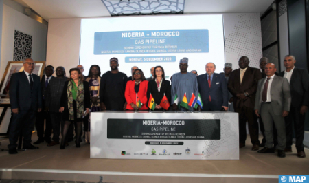 تم اليوم الإثنين بالرباط التوقيع على خمس مذكرات تفاهم، ثلاثية الأطراف، حول مشروع أنبوب الغاز نيجيريا – المغرب، على التوالي وبالتتابع، بين المغرب ونيجيريا من جهة، وغامبيا، وغينيا بيساو، وغينيا، وسيراليون، وغانا من جهة أخرى.