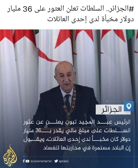 كشف المخبر السري عبد المجيد تبون أنه اكتشف 36 مليار دولار لدى إحدى العائلات الجزائرية.
