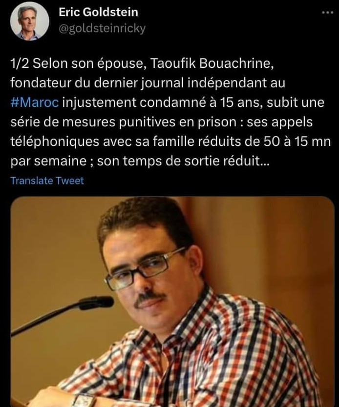 ايريك غولدستاين يتهم الصحافيين المهنيين بجريمة لم يقترفوها؛ ويعتبر توفيق بوعشرين مغتصب صحافيات آخر الصحافيين المستقلين