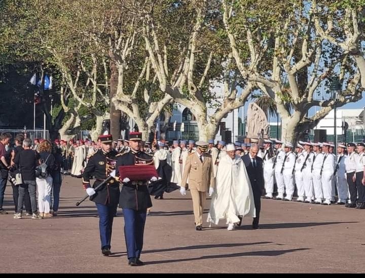 اقيم يوم أمس استعراض عسكري كبير بفرنسا بحضور الرئيس الفرنسي ايمانويل ماكرون؛ تكريما لاخر جندي مغربي شارك في تحرير كورسيكا من النازيين بحضور وزير الدفاع المغربي لوديي.