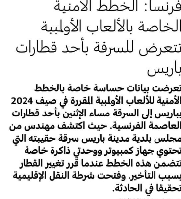 ومع مرور الزمن أصبحت تظهر بوادر أزمة أمنية بفرنسا؛ خاصة مع سرقة المخطط الأمني للألعاب الأولمبية ؛ حيث كشف مهندس سرقة محفظته التي تحتوي على حاسوبه به خرائط امنية.
