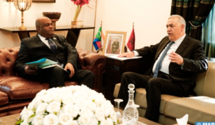 عقد وزير الداخلية، السيد عبد الوافي لفتيت، اليوم الأربعاء بالرباط، جلسة عمل مع السيد محمود فقر الدين، وزير الداخلية والإعلام واللامركزية والإدارة الترابية المكلف بالعلاقات مع المؤسسات بجمهورية اتحاد جزر القمر.